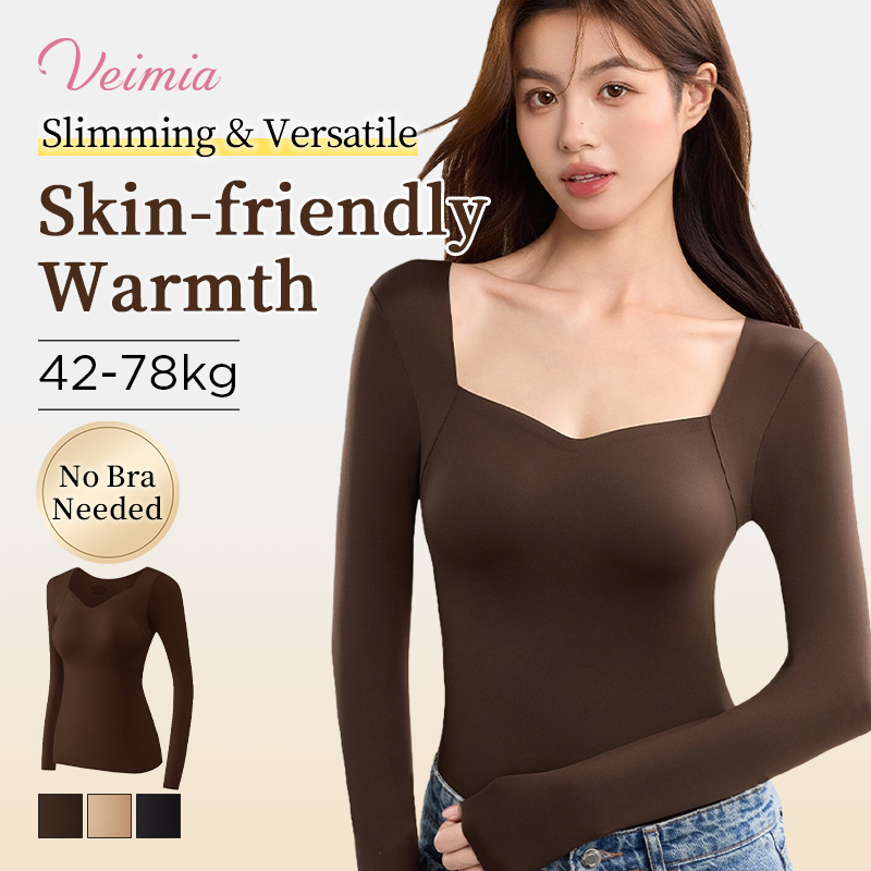 VEIMIA Cozy Long Sleeve Shirts Skin-friendly & Warmth, Square Neck Tops With Built-in Pads Base Layer